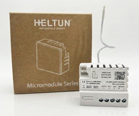 Двухканальное реле высокой нагрузки HELTUN HE-HLS2-ZW приносит невероятные возможности любому подключённому устройству: беспроводное управление, экономию энергии, а также абсолютный комфорт и удобство для вашего дома.