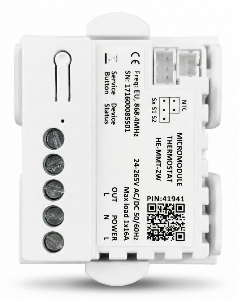 HE-MMT-ZW интегрирует модуль Z-Wave Plus v2 серии 800, обеспечивающий надёжный радиус действия и совместимость с сертифицированными шлюзами и экосистемами Z-Wave.